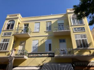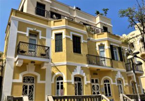 לאן שלא מסתכלים בחיבור הרחובות גרוזנברג, שפ”ר ונחלת בנימין, רואים בניינים היסטוריים יפהפיים. ‘בית טשרנוף’ שממוקם על הגבול של ‘שכונת כרם ישראל’, מול ‘מלון נורדוי’ המונומנטלי, נמצא במרחק הליכה קצר מרחוב אלנבי ומ’שוק הכרמל’. בתצלום אוויר משנת 1918, נראה הבית – כשהיה עדיין בן קומה אחת בלבד – כשהוא ניצב כמעט בודד, כמבנה הצפוני ביותר ברחוב נחלת בנימין.